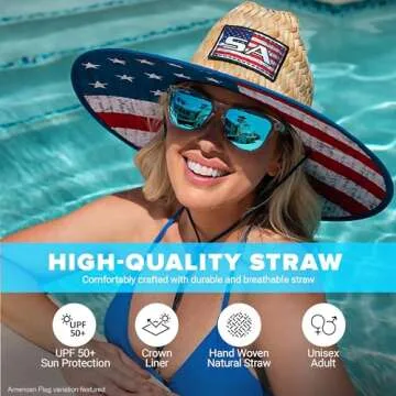 S A Company Summer Straw Hats for UV Sun Protection | Unisex Adult (American Flag Hat 2.0)