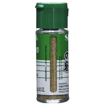 Show moreS&B Sansho Szechuan Peppers are not just your average spice; they are an exquisite blend of authentic Japanese culinary tradition crafted into a fine powder that embodies the refreshing essence of citrus. This 0.42-ounce package brings home the unique taste experience of Sansho, a treasured ingredient in Japanese cuisine known for adding a vibrant, zesty kick to dishes. Renowned for its versatile application, this finely ground pepper can effortlessly replace standard pepper and chili pepper in your favorite recipes. Shake it onto meats, fish, or even vegetables to elevate your meals with that signature Sansho flavor.