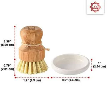 S & C Kitchen Eco-Friendly Bamboo Scrub Brush with Ceramic Holder for Dishes and Pots