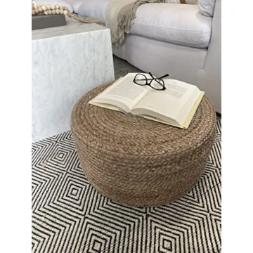S & L Homes Natural Jute Pouf Ottoman - Versatile Footrest & Seating Solution