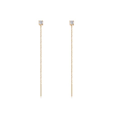 Show moreDiscover the elegance of minimalism and elevate your accessory game with the S.Leaf Cz Threader Chain Earrings. These stunning earrings are crafted from high-quality sterling silver and plated with 14k gold, embodying the perfect blend of sophistication and style. The graceful sterling silver chain threads effortlessly through your ear, resulting in an easy yet chic choice for both daily wear and special occasions. Each earring is adorned with a beautiful round cut cubic zirconia charm that sparkles magnificently, ensuring you'll dazzle wherever you go.