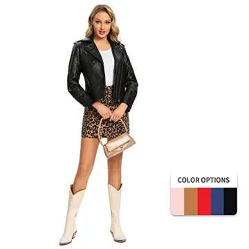 S P Y M Womens Faux Leather Jacket, Double Zip Up Coat, Moto Biker Outwear with Rivets, Regular and Plus Size