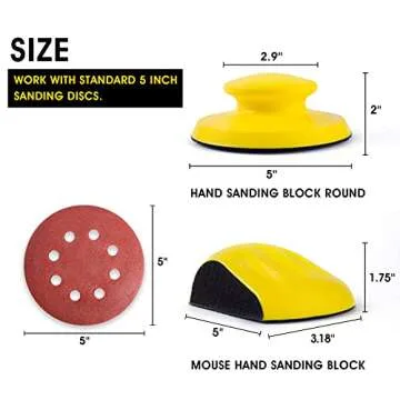 S SATC Sanding Blocks 5 Inch Hook and Loop Sanding Block 2 PCS Round and Mouse Hand Sanding Block for Wood Furniture Restoration Home Arts and Crafts