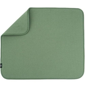 Show moreThe S&T INC. Microfiber Dish Dry Mat is a top-quality kitchen accessory designed to bring both functionality and style to your kitchen. Measuring at a convenient 16 inches by 18 inches, this dish drying mat is made of highly absorbent microfiber material that can hold up to four times its weight in water. Unlike conventional silicone dish drying mats, this mat keeps your countertop dry, making your cleaning tasks easier and more efficient. Its reversible design ensures convenience and optimal performance, offering perfect cushioning for delicate dishes and wine glasses.