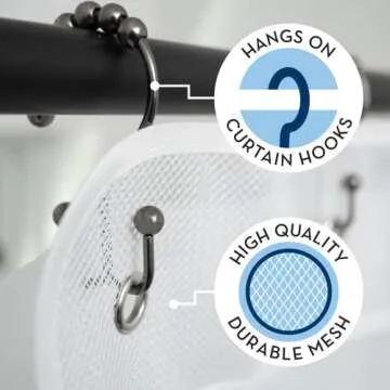 S&T INC. Shower Organizer, Shower Caddy or Bathroom Organizer with Quick Drying Mesh, 7 Pockets to Hold Shampoo, Soap, Loofah, and Cruise Ship Essentials, 14 Inch by 30 Inch, White, 1 Pack