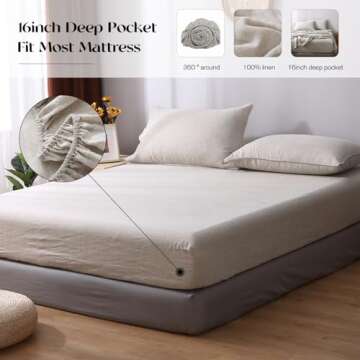 S VICTORY SYMBOL 100% Organic French Linen Bed Sheets,Stone Washed Flax 4PCS Sheets Set(1 Flat Sheet+1 Fitted Sheet+2 Pillow Cases) Breathable(King,Natural Linen)