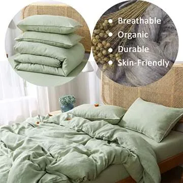 S VICTORY SYMBOL 100% Organic Linen Duvet Cover Set Queen,Stone Washed French Flax Quilt Bedding Set 3 Pieces,Comforter Cover(Light Green) Soft,Breathable
