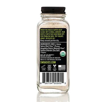 Show more Experience the transformative power of the S.W. Basics Skin Smoothing Face Exfoliator, the ultimate solution for achieving a flawless complexion. This gentle yet effective scrub harnesses the natural goodness of just three simple ingredients to reveal your skin’s true beauty. Made from 100% organic oat flour, almond flour, and sea salt, this luxurious exfoliant is designed to provide a soothing treatment while effectively removing impurities from your skin. With a commitment to sustainability, S.W. Basics ensures all ingredients are sourced from family farms and are certified organic and fair trade.