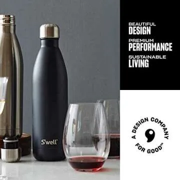 S'well Stainless Steel Water Bottle - 17 Fl Oz - Soft Touch Black - Triple-Layered Vacuum-Insulated Containers Keeps Drinks Cold for 36 Hours and Hot for 18 - BPA-Free - Perfect for the Go