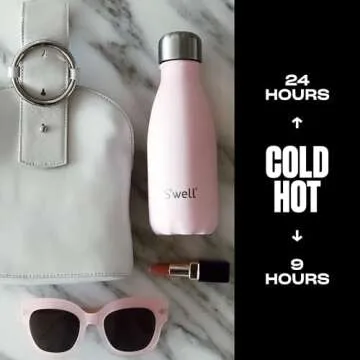 Show more Discover the perfect blend of style and functionality with the S'well Stainless Steel Water Bottle in the gorgeous Pink Topaz shade. This remarkable 9oz bottle features triple-layered vacuum insulation that locks in the temperature of your favorite beverages. Thanks to exclusive Therma-S'well Technology, you can enjoy your drinks cold for an astounding 24 hours or hot for up to 12 hours. The beautiful craftsmanship is not only visually appealing but also makes it an ideal companion for any occasion, from a gym workout to your daily commutes.