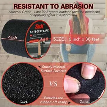 Show moreIntroducing the S&X Heavy Duty Anti Slip Tape, the ultimate solution for enhancing safety and stability in your home or workplace. This premium grip tape measures 6 inches by 30 feet and features a robust 60-grit traction surface, designed to deliver superior anti-slip protection. Engineered with a durable multi-layered coating, this tape is three times stronger than ordinary grip tapes and is built to last, enduring wear and tear for over five years. Whether you're covering steep staircases, slippery ramps, or any other surfaces, this waterproof tape ensures maximum grip, making it an essential addition to any safety protocol.