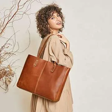 S-ZONE Genuine Leather Shoulder Tote Bag for Women Large Handbag Work Purse