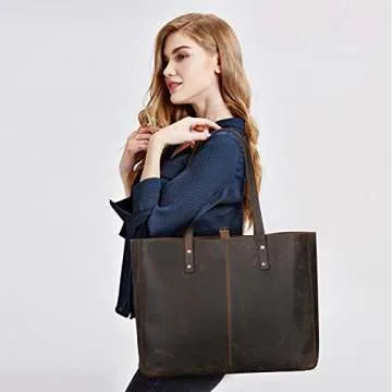 S-ZONE Genuine Leather Shoulder Tote Bag for Women Large Handbag Work Purse
