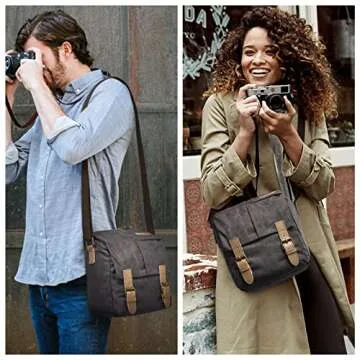 S-ZONE Waterproof Camera Bags for DSLR Canon Canvas Vintage Shoulder Women Men Camera Messenger Bag Leather Trim(Grey)