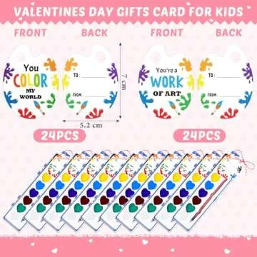 Sabary 24 Pack Watercolor Paint Sets for Valentine's Day Gifts 8 Washable Water Color Paints with Gift Card and 20 Meters Red Rope for Valentine School Birthday Gift Exchange Graduation