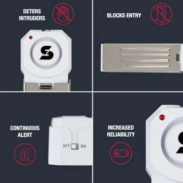 SABRE 120 dB Wedge Door Stop Security Alarm, Extremely Loud Wireless Alarm Siren Audible Up to 1,500 Ft., Non-Skid Pad, Compact Alarm Great for Home, Travel, Apartment or Dorm
