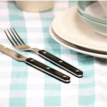 Show moreExperience elegant dining with the Sabre Flatware Set Stainless Steel Black Bistrot, crafted to elevate your meals and impress your guests. This exquisite set includes a comprehensive 5-piece service for 4, totaling 20 pieces, making it the perfect addition to your dining collection. Each set features a beautifully designed soup spoon, dinner knife, dinner fork, salad fork, and tea spoon, beautifully harmonizing with both formal and casual meals alike. The flatware showcases a sleek black handle made of high-quality resin, providing a comfortable grip, while the ends are finished with premium stainless steel 18/10, ensuring durability and long-lasting shine. Imported from France, this flatware embodies sophistication, marrying modern aesthetics with classic functionality.