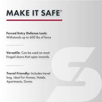 SABRE Portable Door Lock with Travel Bag, Durable Travel Friendly Door Lock for Hinged Doors, Lightweight, Additional Security for Homes, Rentals, Apartments, Hotels & Commercial Buildings