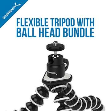 Show moreMeet the **SABRENT Flexible Tripod with Ball Head Bundle**—your ultimate companion for capturing stunning photos and videos with ease and versatility. Designed for both amateur photographers and seasoned pros, this innovative tripod features **360-degree swivel capability** and flexible legs that can bend and wrap around virtually any surface. Crafted from high-quality **industrial strength ABS material**, it ensures durability without compromising on lightweight portability. The tripod's design includes silicone bumpers that provide an exceptional grip, making it a reliable choice for your camera, including popular models like the GoPro and DSLR cameras.