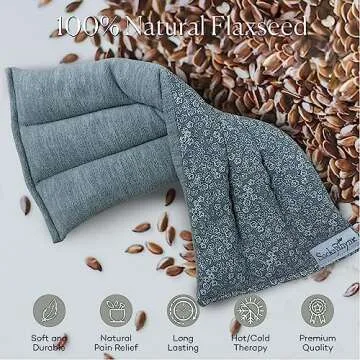 SacksyThyme Microwave Heating Pad for Back, Neck, Menstrual Cramps, Shoulders, Leg Pain Relief - Hot Moist Microwavable Therapy Pack - Gray Unscented Flaxseed Heat Pad Made in USA