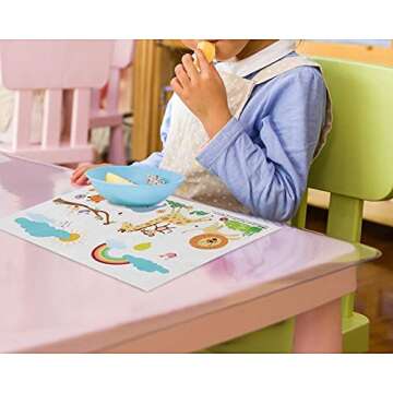 Show moreTransform mealtime into a delightful adventure with our Safari Disposable Placemats! Designed specifically for little ones, this 100-pack of charming placemats features vibrant and playful cartoon zoo animals, including a lion, giraffe, monkey, bear, and elephant. Each top-quality placemat measures 12 x 18 inches, providing ample space for messy fingers and fun mealtime activities. The colorful illustrations not only captivate your child's imagination but also create a joyful dining atmosphere, making every meal an exciting experience!