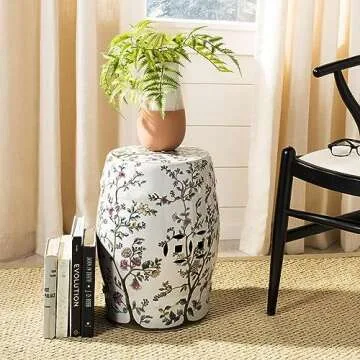 Show moreDiscover the perfect blend of beauty and functionality with the SAFAVIEH ACS4513A Blooming Tree Ceramic Decorative Garden Stool. This exquisite garden stool is designed to enhance any living space, featuring a charming blooming tree motif that adds a touch of elegance to both outdoor and indoor settings. Crafted with high-quality ceramic and finished in a chic white hue, this stool not only looks stunning but is also incredibly versatile. Measuring 13 inches wide and deep, and 18.5 inches tall, it's the ideal size for enjoying a morning coffee on the patio or displaying your favorite plants in the sunroom. Experience the harmonious blend of art and utility as this garden stool becomes a beautiful addition to your home decor.
