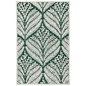 Show more Introducing the SAFAVIEH Capri Collection Area Rug, a stunning 9' x 12' centerpiece in rich dark green and ivory designed to elevate your home decor. Hand-tufted by skilled artisans, each rug is unique and boasts a textured look that enhances any space. Made from 100% premium wool, this rug features a durable 0.25-inch pile height that provides a plush feel underfoot while ensuring it endures the daily hustle and bustle of high traffic areas. Its luxurious design and craftsmanship make it a perfect addition to your living room, dining room, bedroom, or home office.