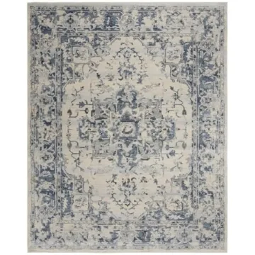 Show more Introducing the Safavieh Charleston Collection Area Rug, a stunning blend of style and functionality that is perfect for any modern home. Crafted from superior synthetic fibers, this non-shedding, stain-resistant area rug offers a luxurious feel underfoot while standing up to the rigors of everyday life. Measuring 8 feet by 10 feet, it is designed to fit beautifully in high-traffic areas such as the living room, bedroom, or dining room, making it the ideal choice for busy households. The exquisite Oriental distressed design in ivory and navy complements a variety of interior styles, from contemporary to traditional, enhancing your decor effortlessly. A gentle 0.4-inch thick pile ensures maximum comfort, allowing you to enjoy a warm and inviting atmosphere with every step.