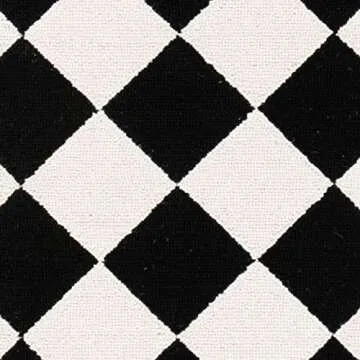 This rug features an ivory and black diamond checkerboard pattern