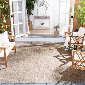 SAFAVIEH Courtyard Collection Area Rug - 8' x 10', Natural & Black, Non-Shedding & Easy Care, Indoor/Outdoor & Washable-Ideal for Patio, Backyard, Mudroom (CY8521-37312)