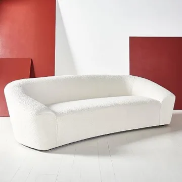 Introducing the stunning SAFAVIEH Couture Collection Hannahlee Contemporary Ivory Boucle/Black Curved Sofa, a masterpiece that embodies elegance, comfort, and sophistication. This haute couture-inspired sofa features a striking curved back design, upholstered in plush boucle fabric, which offers a delightful texture that resonates with fashion-forward aesthetics. Crafted with a durable wood blend frame, this sofa guarantees stability and long-lasting enjoyment in your living space. Measuring...