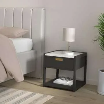 Show moreIntroducing the SAFAVIEH Couture Home Collection Adeline Black Nightstand, a stunning piece that perfectly marries luxurious design with functional elegance. This nightstand features a striking black frame that is enhanced by its chic couture-inspired details. With its beautiful marble tabletop, this nightstand is not just a storage unit but a statement piece that elevates the aesthetic of any room. Imagine showcasing your favorite decor items on the expansive surface while having all your bedtime essentials tucked away neatly in the spacious drawer below. The Adeline Nightstand comes fully assembled, allowing you to enjoy its beauty immediately upon arrival!