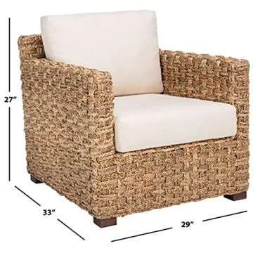 SAFAVIEH Couture Home Collection Gregory Natural/Beige Cushion Water Hyacinth Accent Chair (Fully Assembled)