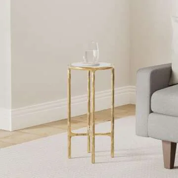 SAFAVIEH Couture Home Collection Jessa Brass Metal/Tempered Glass Top Tall Round End Table (Fully Assembled)