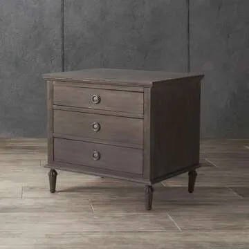 Show moreEnhance the charm of your living space with the SAFAVIEH Couture Home Collection Lisabet Light Brown 3-Drawer Wood Nightstand Table. This statement piece not only serves a practical function but also elevates your home decor with its sophisticated design. Crafted with elegant lines and a polished finish, it seamlessly integrates into various styles whether modern, contemporary, or classic. This nightstand is not just a furniture piece; it's an embodiment of luxury for those who appreciate fine craftsmanship in their everyday lives.