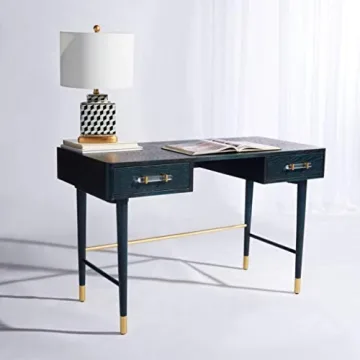 Show moreTransform your home workspace into a hub of sophistication with the SAFAVIEH Couture Home Raelynn Mid-Century Navy 2-Drawer Desk. This exquisite piece is designed for both functionality and style, bringing a touch of luxury to your office environment. The navy finish offers a chic aesthetic, while the brass-finished stainless steel caps and accents add a glamorous touch that elevates any decor. With dimensions of 48" wide x 21.7" deep x 29.1" high, it’s perfectly sized to blend into compact spaces without compromising on elegance.