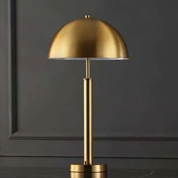 Show more Illuminate your space with the exquisite SAFAVIEH Couture Lighting Collection Harvey Table Lamp. Designed with a modern metal dome shape and a luxurious gold finish, this lamp is more than just a source of light; it's a statement piece that enhances your interior aesthetics. Standing tall at 26 inches, it fits perfectly on your desk, nightstand, or console table, adding an element of elegance to any room in your home.