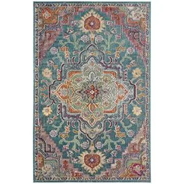 Show more Elevate your decor with the exquisite SAFAVIEH Crystal Collection Accent Rug. This stunning rug features a unique Medallion Distressed Design showcasing a beautiful blend of teal and rose tones, perfectly crafted to infuse vibrancy into your living space. Made from enhanced synthetic durable fibers, this 3' x 5' rug is designed not only for visual appeal but also durability and functionality. Its 0.25-inch thick pile provides the perfect balance between comfort and practicality, making it suitable for high traffic areas such as entryways, living rooms, or bedrooms. Plus, with its stain-resistant properties and non-shedding features, this rug promises to remain beautiful and low-maintenance even in bustling households.