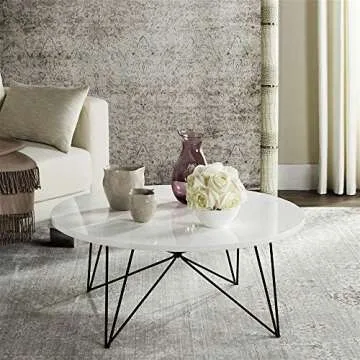Safavieh Home Collection Maris Modern White Lacquer Round Hairpin Leg Coffee Table