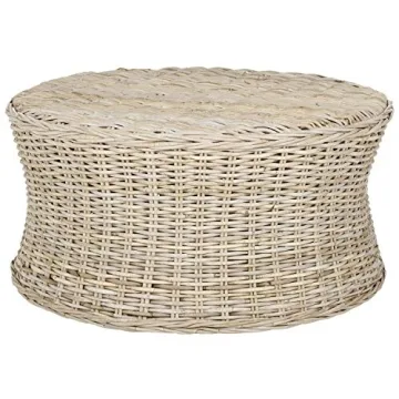 SAFAVIEH Home Collection Ruxton Natural Rattan Round Coffee Table Ottoman
