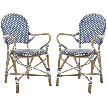 Show moreIntroducing the Safavieh Home Hooper Navy and White Indoor/Outdoor Rattan Stacking Arm Chair, a stunning addition to your home decor that beautifully marries style and functionality. This set of two chairs is designed with a sophisticated navy and white finish, making them the perfect accent pieces for any room. Our expertly crafted PE wicker construction not only ensures durability but also brings a refreshing touch to your living space. Whether you place them in your living room, bedroom, family room, den, library, or study, these chairs will undoubtedly enhance the aesthetic of your home. With over 100 years of experience, Safavieh is renowned for delivering high-quality products that combine unmatched style and superior craftsmanship.
