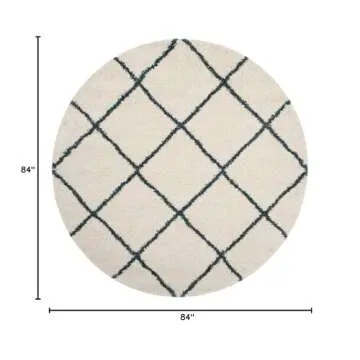 SAFAVIEH Hudson Shag Collection 7' Round Ivory / Slate Blue SGH281T Modern Diamond Trellis Non-Shedding Living Room Bedroom Dining Room Entryway Plush 2-inch Thick Area Rug