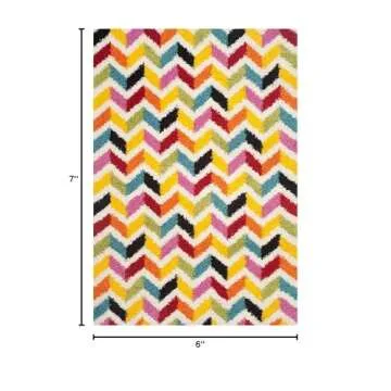 Show moreTransform your child’s space with the SAFAVIEH Kids Shag Collection Area Rug. Measuring a generous 5'3" x 7'6", this enchanting rug features a delightful rainbow chevron design that instantly adds energy and personality to any room. Crafted from enhanced soft synthetic fibers, this rug boasts a virtually non-shedding pile, ensuring your home stays clean and comfortable without the hassle of frequent vacuuming. The plush 2-inch thick pile height offers a cushy and cozy surface that kids will love to play on, making it an ideal addition to high-traffic areas such as living rooms, bedrooms, or playrooms.