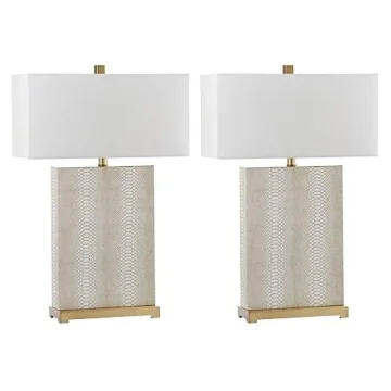 Safavieh Lighting Collection Joyce Modern Art Deco Cream Faux Snakeskin Lamps Set of 2