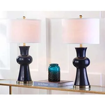 Safavieh Lighting Collection Lola Column Navy Table Lamp, Set of 2