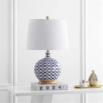 SAFAVIEH Lighting Collection Makenna Geometric Blue/ White 25-inch Bedroom Living Room Home Office Desk Nightstand Table Lamp (LED Bulb Included)
