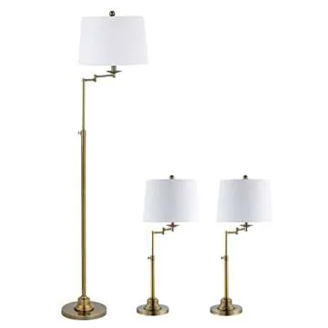 SAFAVIEH Lighting Collection Nadia Contemporary Gold Swing Arm Floor & Table Lamp Set of 3 (LED Bulbs Included)