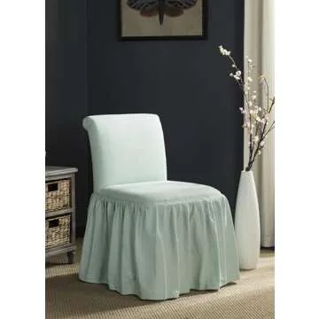 Show moreElevate your bedroom decor with the SAFAVIEH Mercer Collection Ivy Vanity Chair. With its stunning robins egg blue upholstery, this chair isn't just a piece of furniture; it's a statement of style and sophistication. Crafted with precision from durable birch wood, it showcases a beautiful fusion of a classic design and modern flair, making it a versatile addition to any bedroom. The chair boasts a soft linen-cotton blend fabric that not only enhances comfort but also ensures lasting beauty, standing the test of time both in aesthetics and functionality.