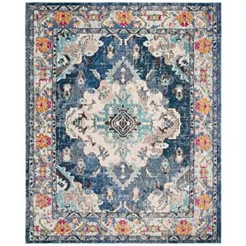 Show moreTransform your space with the stunning SAFAVIEH Monaco Collection Area Rug in a beautiful Navy and Light Blue palette. This versatile 8' x 10' rug showcases a gorgeous boho chic medallion design that injects color and personality into any room—from the living room to the bedroom and beyond. Crafted from enhanced synthetic fibers, it combines durability with style, making it a perfect addition to both modern and traditional homes.