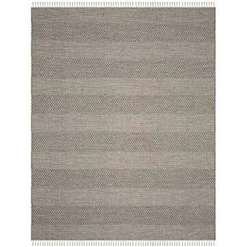 SAFAVIEH Montauk Collection Area Rug - 8' x 10', Ivory & Anthracite, Handmade Flat Weave Boho Farmhouse Cotton Tassel Fringe, Ideal for High Traffic Areas in Living Room, Bedroom (MTK330N)